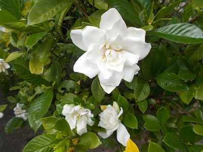 中庭ではアジサイだけでなくクチナシの花も満開です。花の甘い香りが、初夏を感じさせてくれます。
