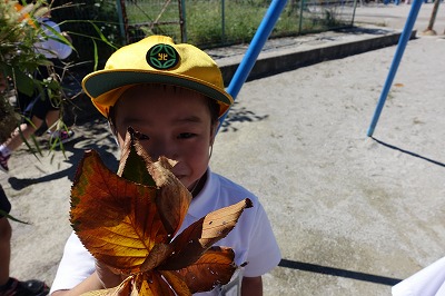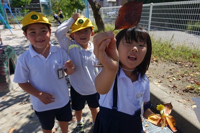 生活科の学習で秋を探しにいきました。トンボを見つけたり葉っぱの色が変わっていることに気がついたりしました。いつの間にかこんなにすてきな秋になっていました。