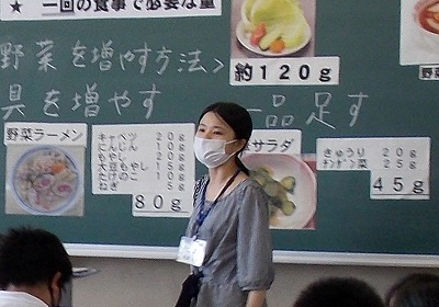 一日に必要な量の野菜を摂るための食事の組み合わせについて、タブレットの資料を参考にしながら考えました。