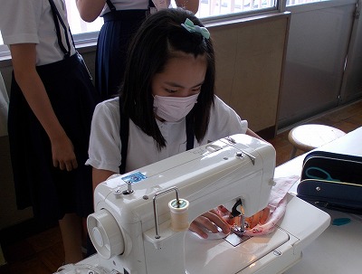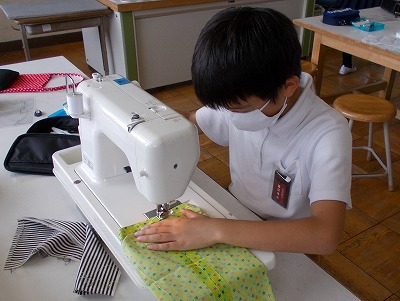 今日は6年生が家庭科の授業で、ミシンを使ったティッシュカバーづくりを行いました。ミシンの操作を一つ一つ確認しながら、丁寧に取り組んでいました。