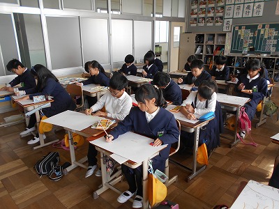 みんな頑張って描いています。完成が楽しみです。