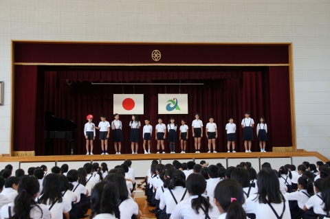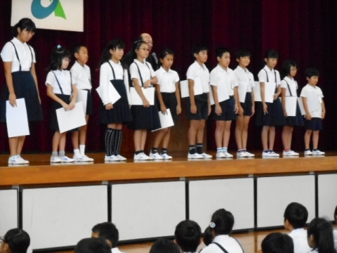 はじめに、理科作品展、全国敬老キャンペーンあいち”おじいちゃんおばあちゃんへの手紙”、海部地区読書感想文コンクールで、それぞれ入賞した皆さんの表彰がありました。