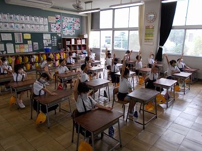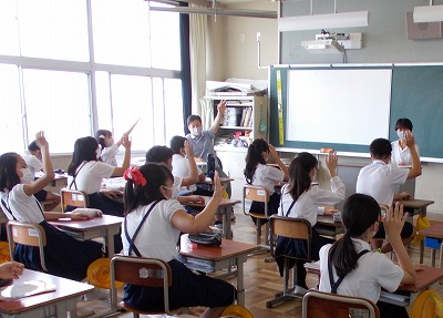 今日の朝の時間、保健委員会が新型コロナウイルス感染予防に関する健康クイズを行いました。放送で〇×クイズを出題し、挙手で回答しました。クイズを通して、感染予防のポイントを再度確認し、意識を高めることができました。