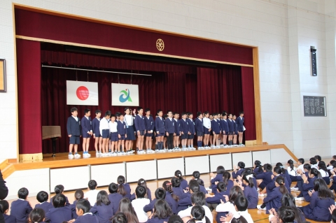 朝礼では、まず、佐織地区小学校サッカー・バスケットボール競技会の表彰がありました。