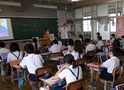 【5年生英語】自分がなりたい職業のイラストをタブレットで検索し、英語での発表に使うワークシートに描きました。