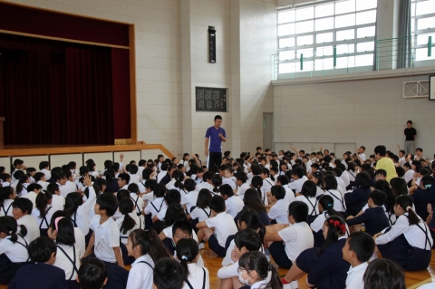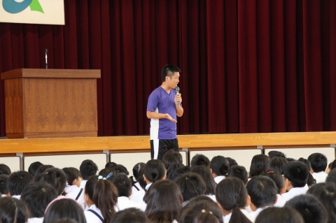 ところで、北河田小学校で「自分が最強だ」と思う人、先着1名に手伝ってもらおうと思います。
