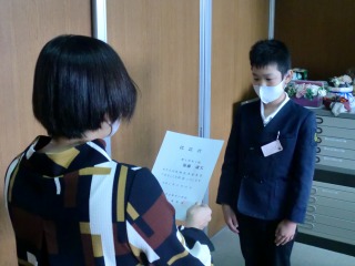 四人とも、よい表情で認証状や賞状を受け取ってくれました。これからも、自分の得意を生かして頑張って欲しいと思います。
