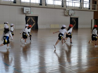 その後、「大股で走る」「スキップをする」など、様々な運動に取り組んでいました。心も体も元気に育ってほしいと思います。