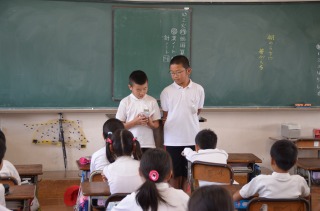 いよいよ後期児童会役員選挙活動の始まりです。候補者が推薦責任者とともに、4年生以上の各クラスに演説に行きました。
