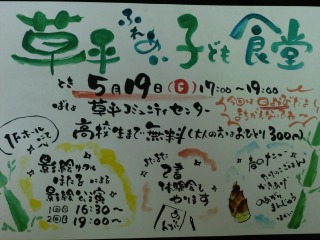 一昨年度は「町方子ども食堂」が、昨年はさらに「草平子ども食堂」が開かれていましたが、今年も「草平子ども食堂」が5月19日(日)に開かれます。