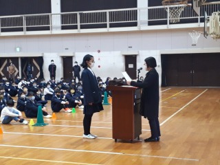 書写コンクールの表彰もあり、少し時間が長くなりましたが、最後までしっかりと話を聞くことができ、子どもたちの成長を感じました。児童会の児童の進行もスムーズでした。