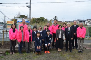 贈呈式後、児童会役員の児童は、体育館西の花壇に移動し、人権の桜の苗の植樹を行いました。人権擁護委員の方たちと共に、苗に土をかぶせました。この人権の桜を大切に見守り、大きく育てていきたいと思います。そして、この桜の木が大きくなるとともに、草平小学校の子どもたちの人権意識も高まっていくことを願っています。