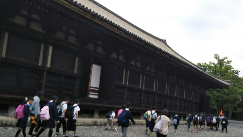 三十三間堂の見学をしました。千一体の千手観音や風神、雷神像、四天王像などを見て、その圧巻の迫力にため息をつく子もいました。