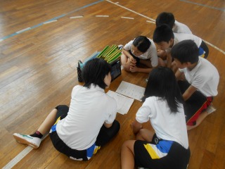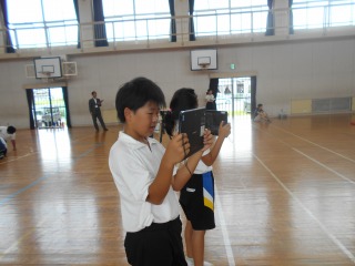また、演技後はiPadを使って振り返り、「もっとここを大きく動いたほうがいいね」「僕は三点倒立を入れたいけど、できるかなあ」「ここのタイミングを合わせよう」などと、意見を交換し合っていました。