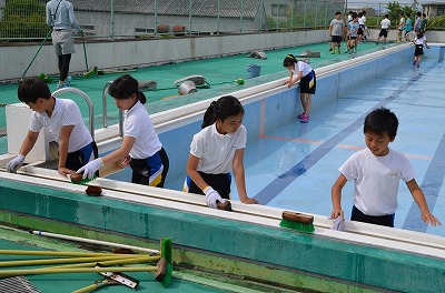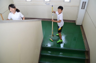 曇っていましたが外は蒸し暑いなかでも、子どもたちは楽しみながら一生懸命掃除をしました。