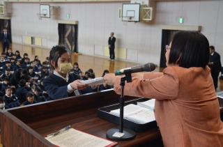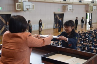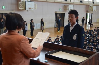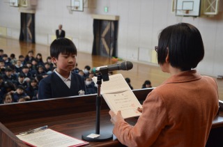 修了式では、各学年の代表が校長先生から修了証書をいただきました。