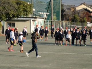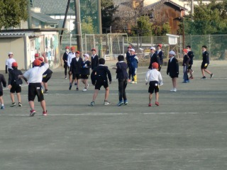 そこで、先生たちで相談し、今日は運動場で「ベースボール型ゲームクラブ」と「ボールクラブ」と一緒に、大ドッジボール大会を行いました。大人は、「寒い!」と背中を丸めて縮こまっていますが、子どもたちは大きな声を出しながら、楽しく参加していました。また、クラブ対抗だったので、とても盛り上がったようです。