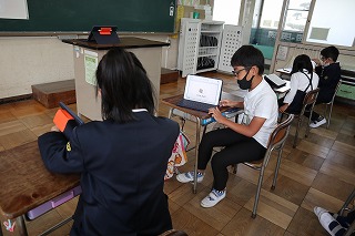 3年生は、外国語活動で自分のタブレットを使い、アルファベットの発音練習(フォニックス)に取り組んでいます。授業のはじめに少しずつ練習し、今では