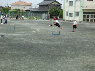 5年生がキャンプに出かけていますが、授業後のグランドや体育館では、6月2日に行われる、愛西市小学校陸上競技大会に向けて、6年生だけの練習が行われていました。