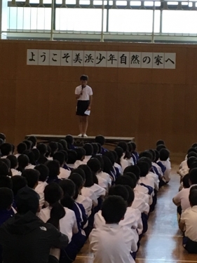 同宿した3校と朝のつどいを行いました。ラジオ体操、学校紹介、立派にできました。