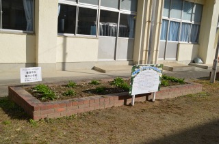 同じ日の午前に、愛西ライオンズクラブ会長の吉川さんはじめ、たくさんの方が看板を立てるために来校してくださいました。しっかり杭を打ち込み、看板も添え木を裏打ちして補強してくださいました。きれいに看板が設置された花壇を見て、『アイリンブループロジェクト』のねらいや、あいりちゃんの命の重さを忘れないように、大切に育てていきたいと、改めて思いました。