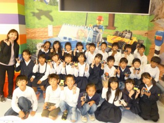 欠席者もなく、全員朝からみんなワクワクした笑顔でバスに乗っていきました。レゴランドに入ると、人形や動物、魚など様々なものがレゴで作られていて、子どもたちはびっくりしていました。平日でしたが、人も多く外国人の観光客もたくさんいました。