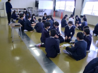 インフルエンザや風邪が心配される時期ですので、予防も含めてマスク姿の子どもたちも多かったですが、2時間目の終わりのチャイムが鳴ると、いそいそと会場の視聴覚室に集まってきました。