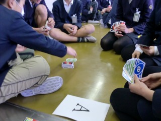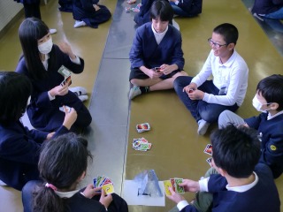 タイマーが0になるまで、あちらこちらで歓声が上がり、楽しそうな笑顔が見られました。男女分け隔てなくUNOをする姿は、とても微笑ましかったです。