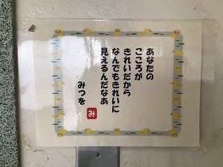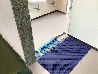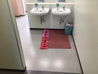 校舎を歩いていると、素敵な場面を見つけました。トイレのスリッパがきれいに整頓されていました。児童の皆さんが、次に使う人のことを考えてきれいにトイレを使っていることがよくわかります。