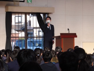 その後、校長先生のお話と生徒指導の野村麻人先生のお話を聞きました。