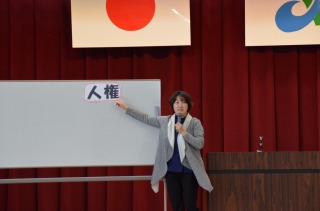 12月4日(火)から始まる人権週間に向けて、安江先生から「人権」についてのお話がありました。人権とは、「安心していられる」「自信をもっていられる」「自由に選べる」権利のことで、一人一人誰もがもっている権利であること。でも、友達に意地悪を言われたり、仲間外れにされたりしている人は、人権が守られているとは言えません。そんな時、人権を取り戻す大切な3つの言葉「いやと言う」「その場からにげる」「相談する」を覚えておいてほしい。その3つもできないときは『子どもの人権SOSミニレター』というものを配るので、それを使って相談しましょうと言われました。