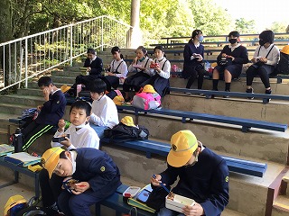 11月5日(金)に、6年生は社会見学へ行ってきました。 青塚古墳では、古墳に登り、実際の大きさに皆びっくり。古墳の上から、当時の豪族が眺めたであろう景色を見て、当時の人々の暮らしに思いを寄せることができました。