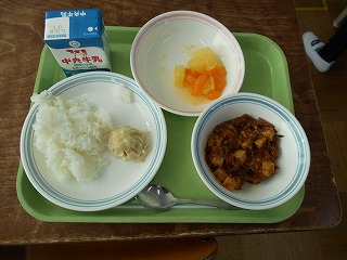 今日の献立は麻婆豆腐、小籠包、ごはん、フルーツポンチ、牛乳でした。どのクラスもてきぱきと配膳をして、2021年最後の給食をみんなで美味しくいただきました。
