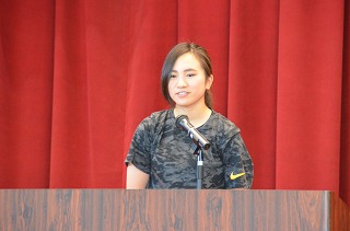 そして、今日は4年2組の担任の長﨑先生のお話を聞きました。「今年度から草平小学校に赴任しなの、クラスの人たち以外にも自分を知ってほしいと思います」と話し始めました。