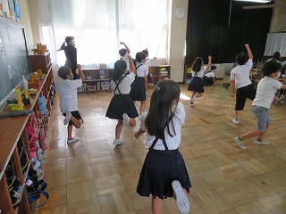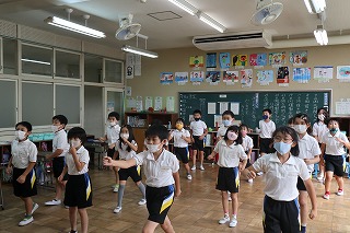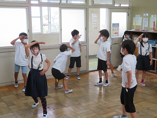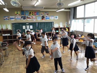 今年、3・4年生はWANIMAの「ともに」という曲に合わせてダンスをします。学年での練習以外にも、早く練習をしたいという子が多く、休み時間に映像を見ながら振りの確認をしています。初めは恥ずかしそうに踊っていた子も、今では、皆、とても楽しそうに練習しています。運動会当日、楽しそうに踊る子どもたちの姿を見るのがとても楽しみです。