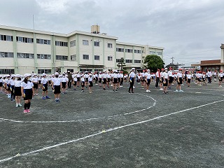 1限目に、全校での運動会練習が行われました。
