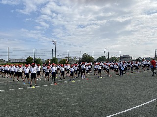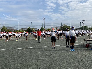 初めに、開会式・閉会式の隊形に整列し、集団行動を学びました。その後、入場や退場の練習をしました。1,2年生にとっては初めての全校での練習でしたが、どの児童もしっかりと話を聞いて、集中して練習に取り組むことができました。運動会当日、かっこいい姿を見てもらえるように、引き続き練習を頑張っていきたいと思います。
