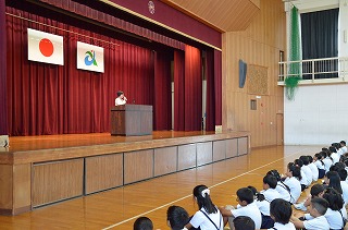 長かった雨がやっと上がり、朝から太陽が照りつける日になりました。朝礼がありました。
