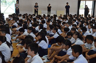 今日は、校長先生のお話の日でした。先週、活発な梅雨前線がもたらした豪雨によって、西日本を中心に甚大な被害を被りました。朝からどのテレビ局も、この豪雨の被害状況について放送をしていました。