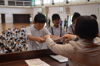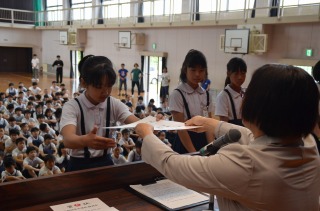 今日は6月最初の朝礼でした。先日行われた、愛西市小学校陸上競技会の表彰を行いました。本当によく頑張りました!入賞者は以下のとおりです。