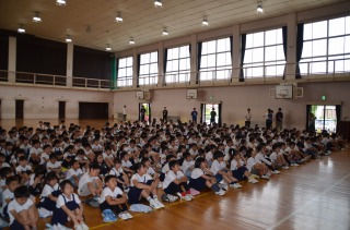 校長先生のお話では、陸上競技会に関する話の中で、挑戦しなければできなかった経験なので、これからもいろいろなことに参加したり挑戦してほしいこと、開閉会式での姿勢があまり良くなかったので、姿勢に気をつけて生活してほしいと話されました。