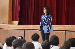 【6月3日(月)朝礼の話】.pdf その後、今日は1年2組の浅野先生のお話でした。体育館中に響く大きな声で「おはようございます!」とあいさつをされました。中学校・高校とソフトボールの選手で、1番ショートのレギュラーをつとめた先生は、実は小学校では運動が得な子ではなかったそうです。小学校の時ミニバスやスイミングをしていましが、いつもベンチで応援、水泳もしっかりとは泳げずだったそう。でも、「あきらめない」という気持ちを忘れず、一生懸命に走ったり応援したりと頑張ったので、こんな大きな声が出るようになり中学校・高校でレギュラーを取れる力が付きました。「あきらめずに頑張る」ことと、「チャレンジをし続ける」ことの大切さを、子どもたちに伝えました。