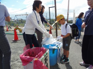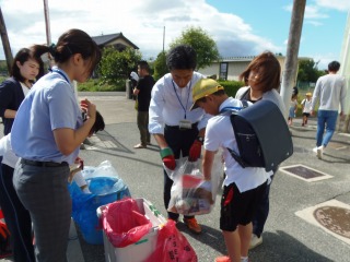 クリーン作戦として、朝は親子でごみを拾って通学路をきれいにしながらの登校でした。ゴミ袋に拾ったごみを入れて元気よく親子で登校しました。