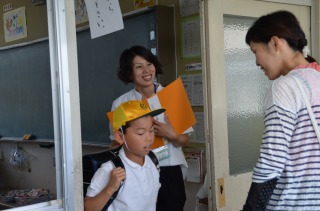 帰りは、緊急時の対応のための「引き取り訓練」をして下校しました。肩を並べて帰る姿は、とても微笑ましかったです。