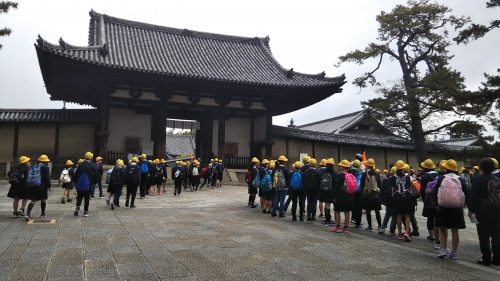 予定よりも少し早く法隆寺に到着しました。今から見学し、その後松本屋さんでお昼を食べます。