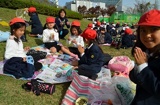 お家の人に用意していただいたお弁当をいただいたあと、園内の遊具で時を忘れてしまいそうになりながら遊びました。
