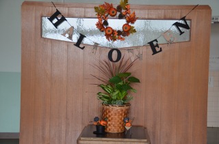 朝晩はめっきり涼しくなり、秋らしくなってきました。先週末に、職員・来賓玄関の模様替えをしました。季節感を出すために、10月なのでハロウィンをテーマにしてみました。ちょっとした飾りで、何となくワクワクするような楽しい空間になりました。11月はどんなテーマで飾ろうかと、楽しみもできました。