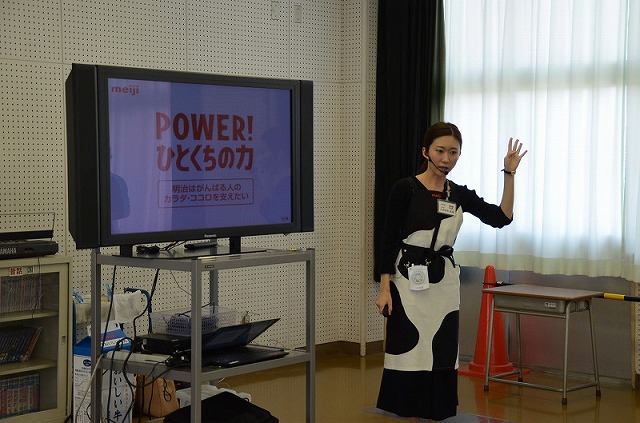 3年生では、(株)明治より3名の先生を招いて、「みるく教室」で勉強しました。