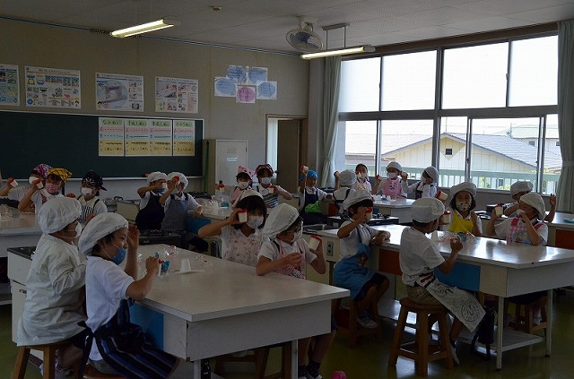 2時間目は家庭科室に場所を移して、手作りバターを作りました。容器に「乳脂肪」だけのクリームを入れ3分間一生懸命振り続けました。手応えがかわったら、バターの完成です。クラッカーにつけておいしくいただきました。