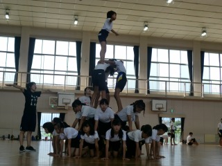 途中の組体操の練習も、3段ピラミッドは、音楽に合わせて作ったり崩したりと、タイミングをはかりながら何度も練習しました。